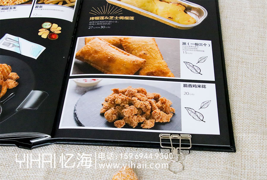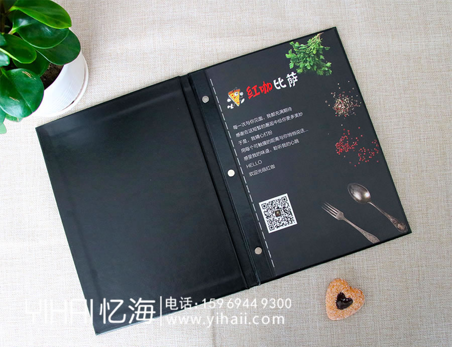 菜譜的制作材料好不僅能很好地反映菜單的外觀質(zhì)量,同時也能給顧客留下較好的第一印象。因此,在菜單選材時,既要考慮餐廳的類型與規(guī)格,也要顧及制作成本,根據(jù)菜單的使用方式合理選擇制作材料。一般來說,長期重復使用的菜單,要選擇經(jīng)久耐磨又不易沾染油污的重磅涂膜紙張;分頁菜單,往往是由一個厚實耐磨的封面加上紙質(zhì)稍遜的活頁內(nèi)芯組成。而一次性使用的菜單,一般不考慮其耐磨、耐污性能,會選用精良,設(shè)計優(yōu)美的單張紙,方便攜帶。