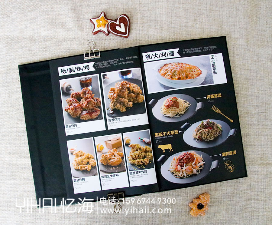 恰到好處的菜品照片有效提高銷售額。照片越生動形象,顏色越真實逼真,就越能刺激人的感官。當然,菜單上的圖片也不能太多了,放了太多的照片反而會弄巧成拙,降低顧客對圖片的感知。